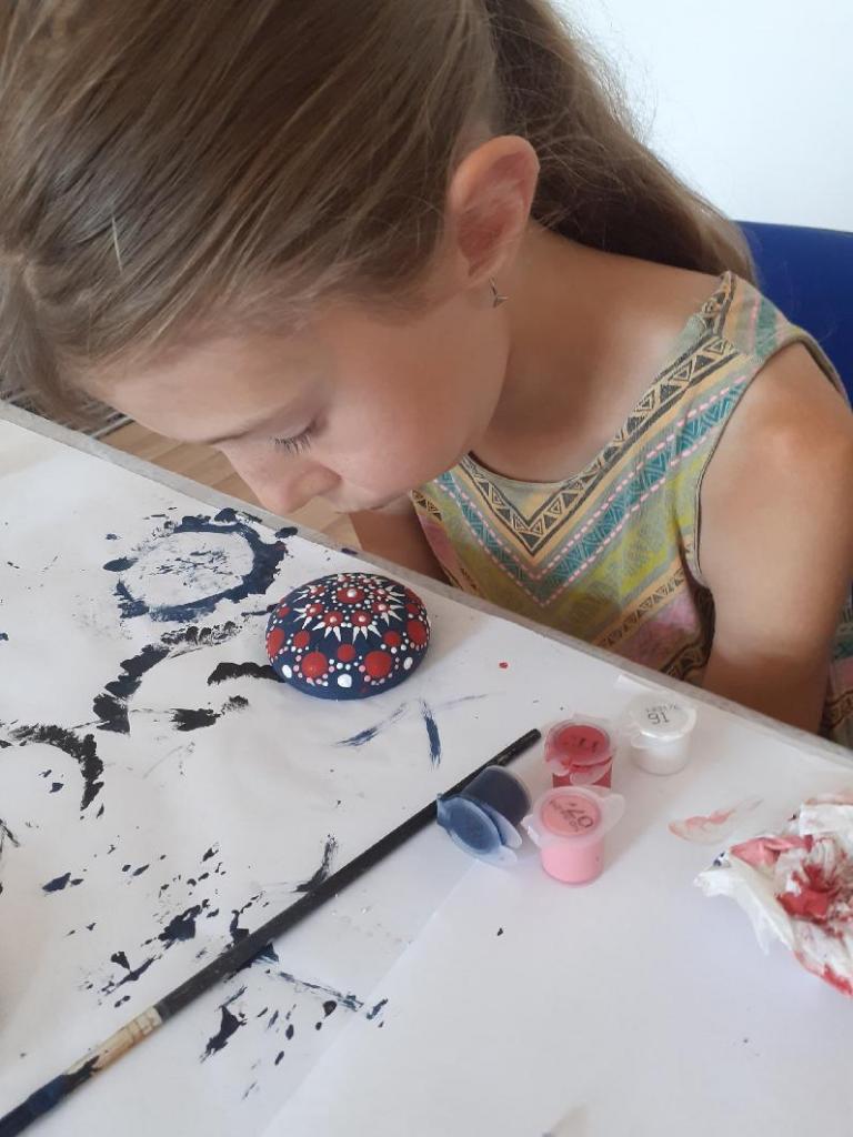 Tečkované mandaly, malování kamínků s paní Rosickou.