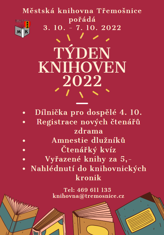 Týden knihoven nejen pro naše čtenáře 3. 10. - 7. 10. 2022.